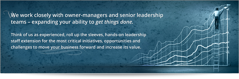 This takes both time and focus, two things in short supply in many mid-sized organizations. In these settings there's a heightened need for ambidextrous leadership capable of rolling up the sleeves and being hands-on to move the business forward.  And that's where we come in.